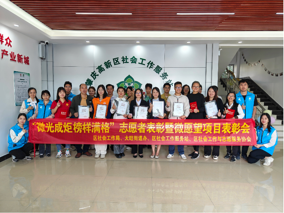 2023年11月24日上午,“微光成炬 榜样满格”志愿者表彰暨微愿望项目表彰会在高新区社会工作站顺利召开。