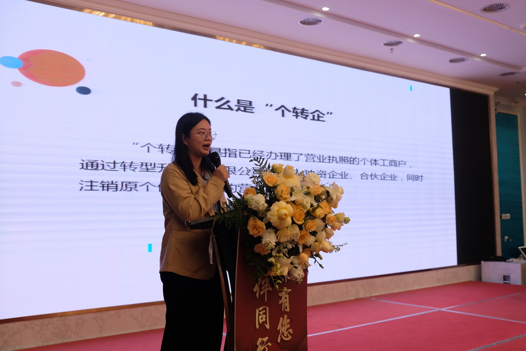 图为市个私协会常务副会长兼秘书长陆婉韶就个体工商户分型分类相关政策进行讲解,并结合实际案例提醒经营主体注意做好个人及客户信息保护工作,防止出现泄露客户信息等问题。