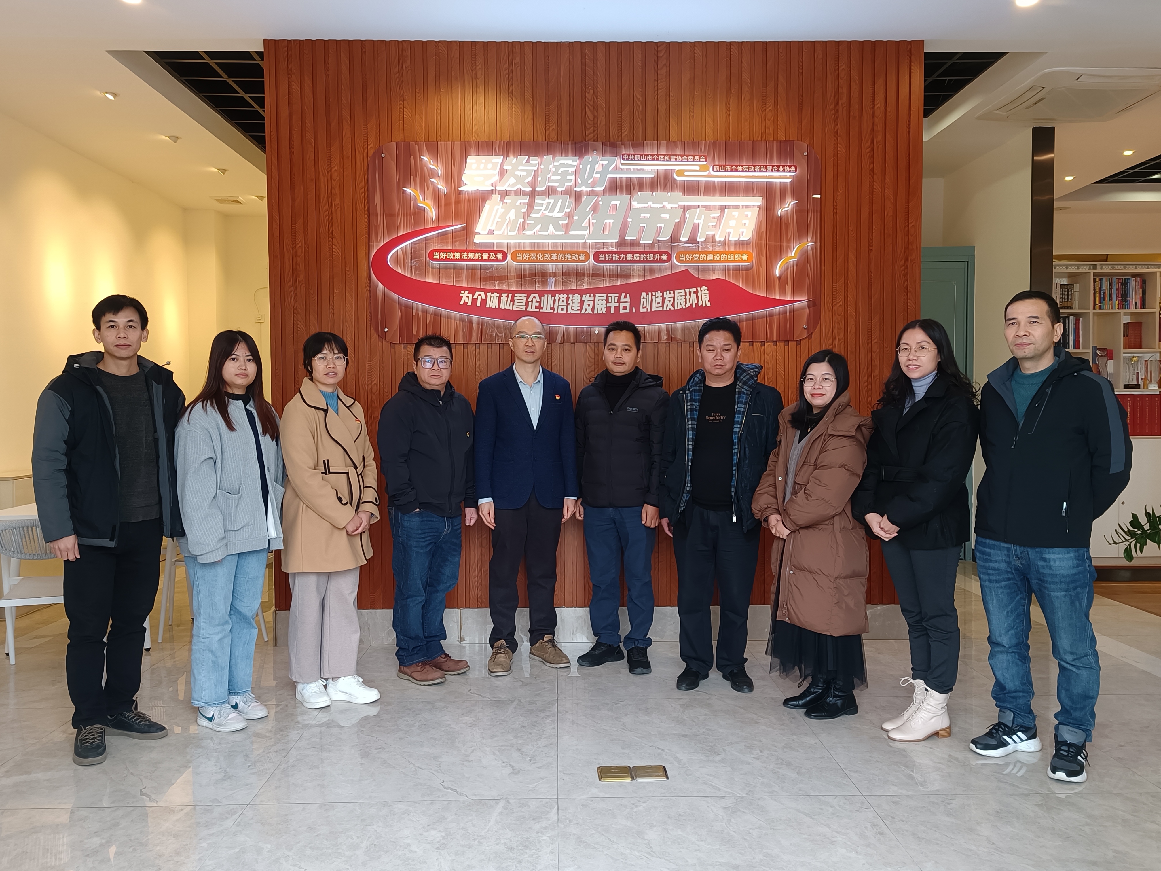 2023年12月19日,德庆县市场监管局党组成员、副局长李灿荣率德庆县个私协会副会长、个私协会理事会成员一行到江门鹤山市开展交流学习活动,鹤山市个私协会党委书记林阳照陪同参与交流学习活动。