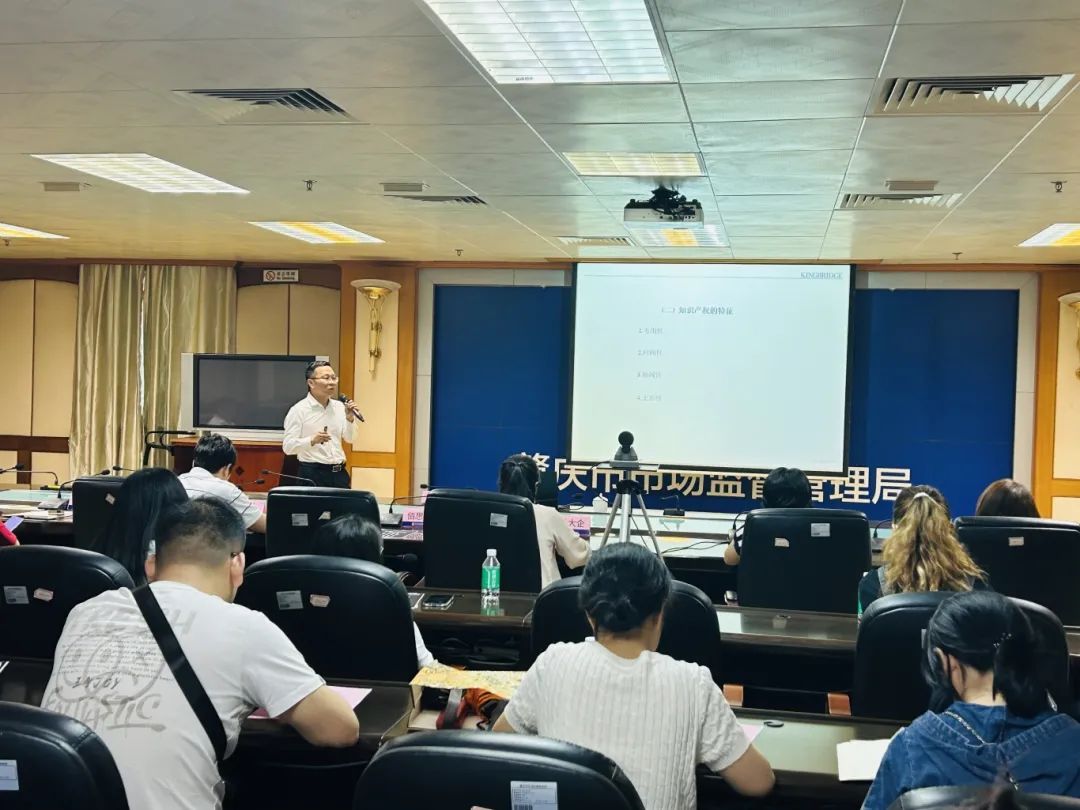 图为贺文华律师为大家讲授知识产权法律风险防范知识。