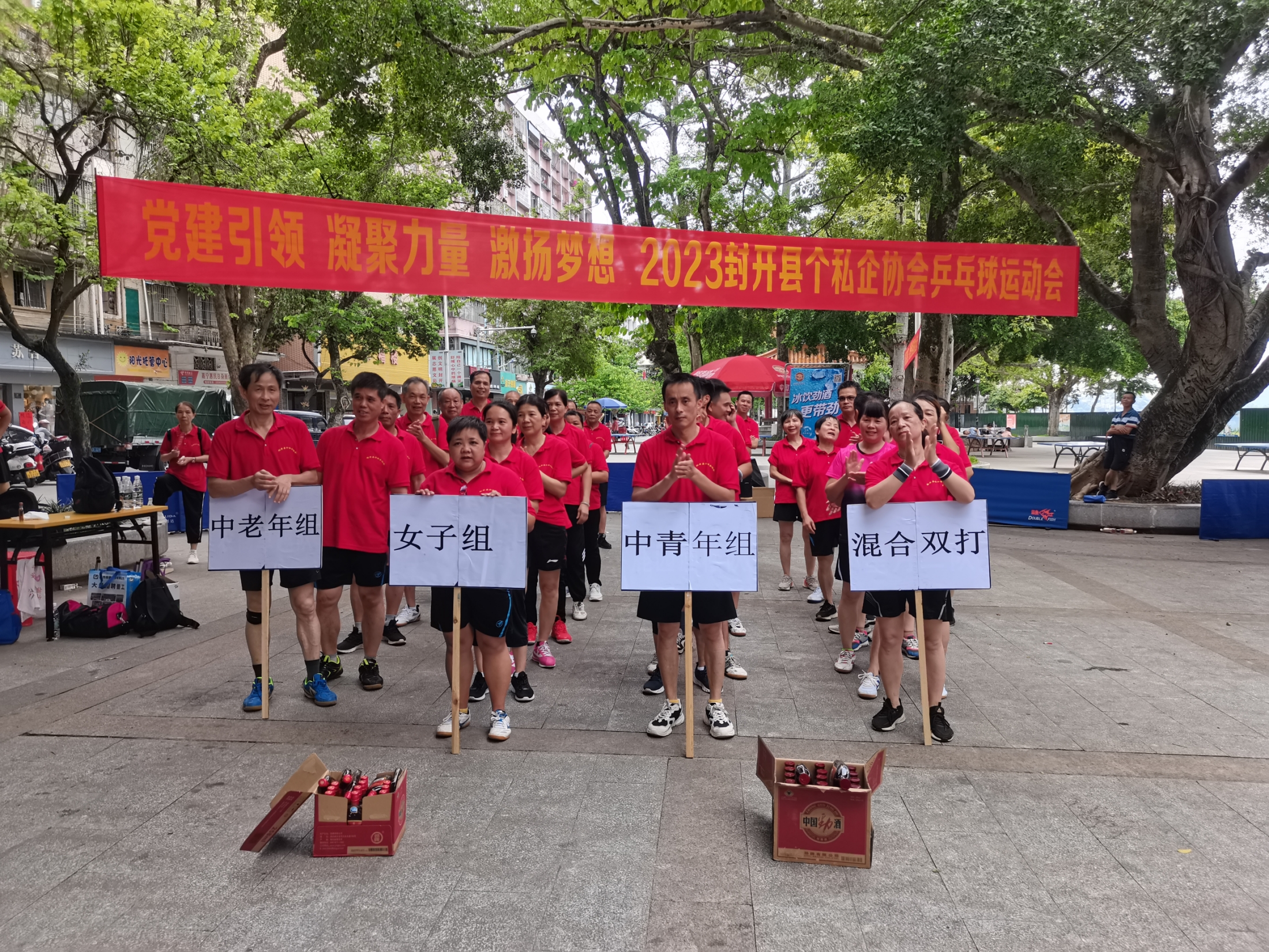 封开县个体劳动者私营企业协会在封开县江滨公园举行第一届乒乓球运动会。