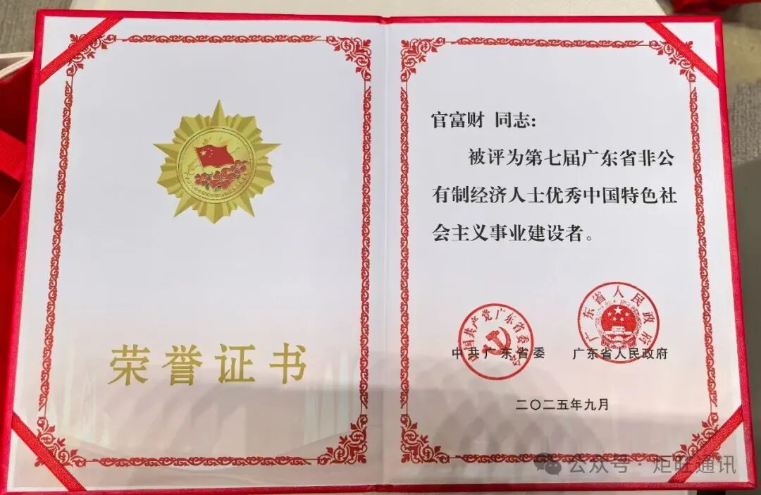 2025年9月29日,“粤联四海 商创未来”2025世界粤商大会在广东广州白云国际会议中心隆重举行。大会汇聚全国工商联、国家部委相关领导及粤港澳三地政府代表,共同见证这一粤商盛事。会上,第七届“广东省非公有制经济人士优秀中国特色社会主义事业建设者”评选结果正式揭晓,并举行颁奖仪式,市个私协会副会长官富财同志荣获该称号。